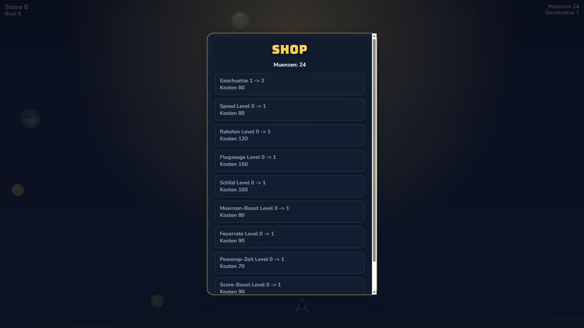 Dash Drop“ ist ein rasantes 2D‑Arcade‑Shooter‑Spiel: Weiße Hindernissen aus, kleine Sterne für Münzen, schalte Power‑Ups frei und verbessere im Shop Waffen, Geschwindigkeit und Spezialfähigkeiten, um immer höhere Ergebnisse zu erzielen.